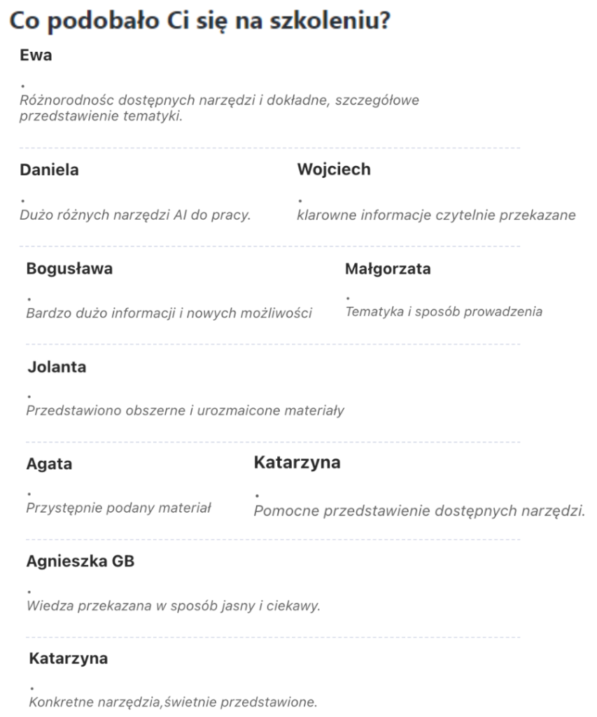 - Szkolenie tłumaczy krok po kroku narzędzia AI, z prostymi instrukcjami.